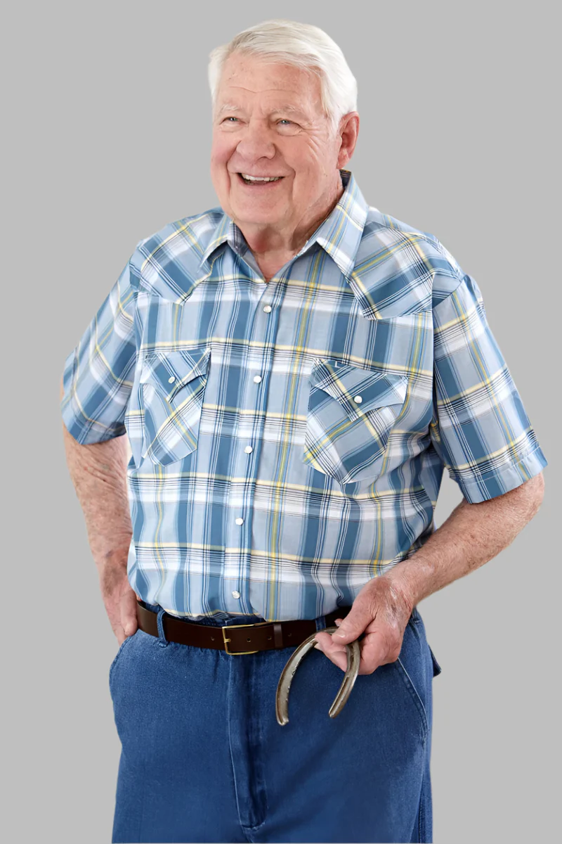 This western-style snap-front shirt simplifies self-dressing with easy-to-fasten snaps, while offering a full men’s cut and casual short-sleeve comfort.